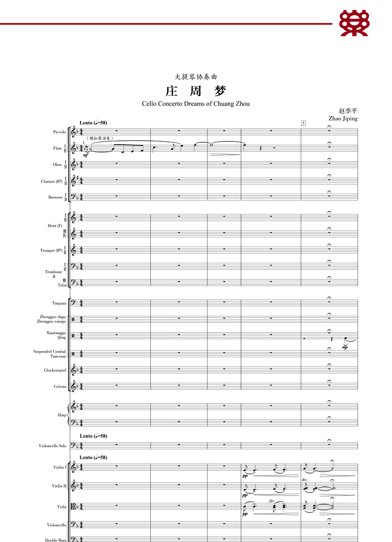 赵季平 庄周梦 大提琴协奏曲 总谱