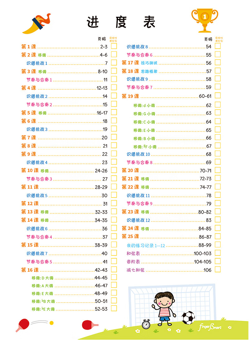 《每日10分钟趣味钢琴课》共4册,共8级,涉及识谱、节奏、移调、和弦、即兴创作,以及各音乐风格的练习课程等板块,内容丰富、逻辑清晰、循序渐进,适合钢琴进阶的儿童学习使用,也可配合钢琴考级使用。这是一套实用性非常强的引进版教程。全套书有统一的栏目安排,有具体要求和所要达到的教学目标,还有大量的技术练习。每册中每一课都有配套的示范音频和伴奏音频,可以帮助琴童提高学习的兴趣和积极性。相信读者若能正确使用,可以大大提高习琴者的演奏技术。