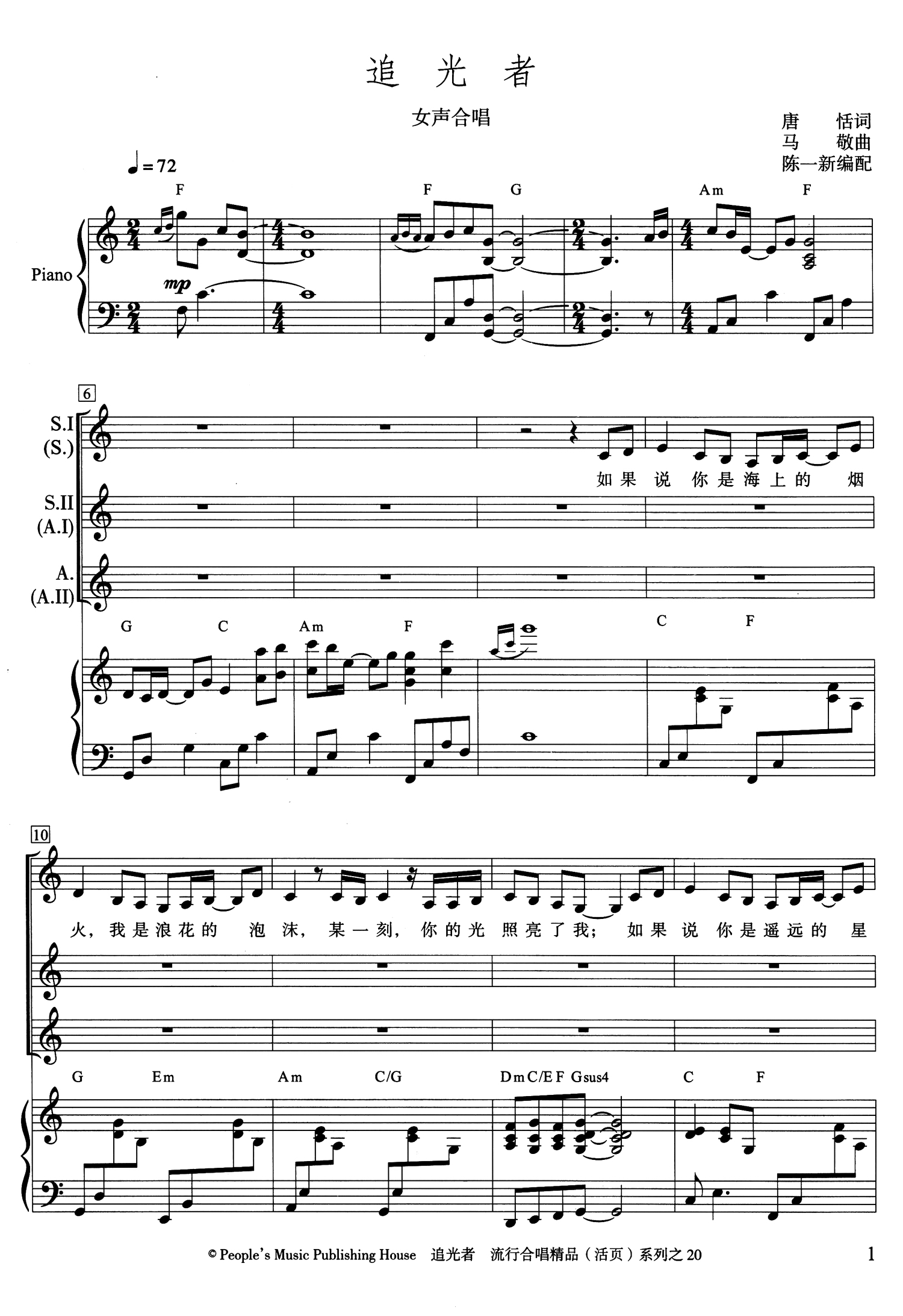 追光者 女声合唱 五线谱与简谱 陈一新编配