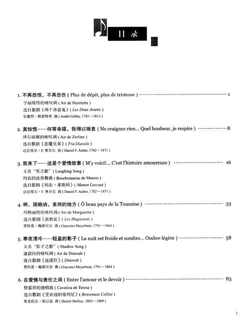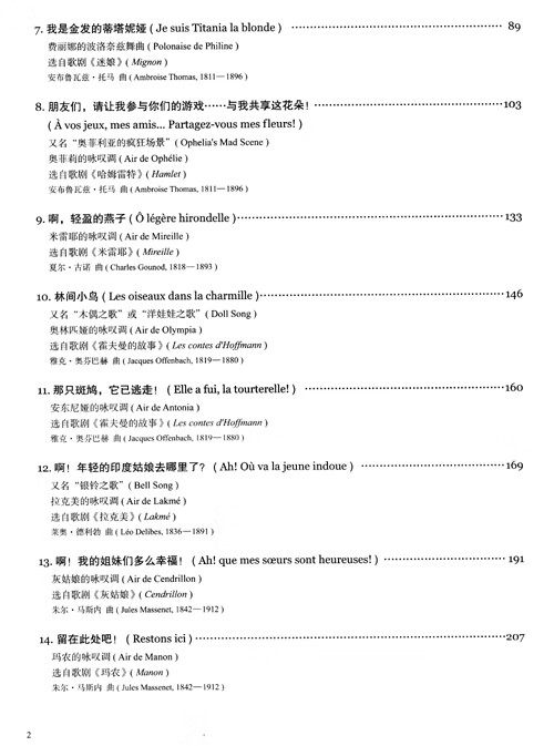 本书为下册, 这套谱子的是字对字的翻译, 字对字的翻译对大家理解作品、学括欣赏作品、演唱作品都有极大帮助。以往国内出版的一些咏叹调集存在种种不够规范的地方, 一个严重的就是单词的字节和音符以及节奏对应不。在法语单词和音符对应错误的时候, 会带来很多问题, 影响学生的学者挑选的版本都是。本书是面向音乐院校专业学生、师范院校音乐专业以及艺术考生的声乐教材, 所选曲目共有14自18部歌剧, 都是歌剧中高度艺术性、音乐会常用的歌剧咏叹调。