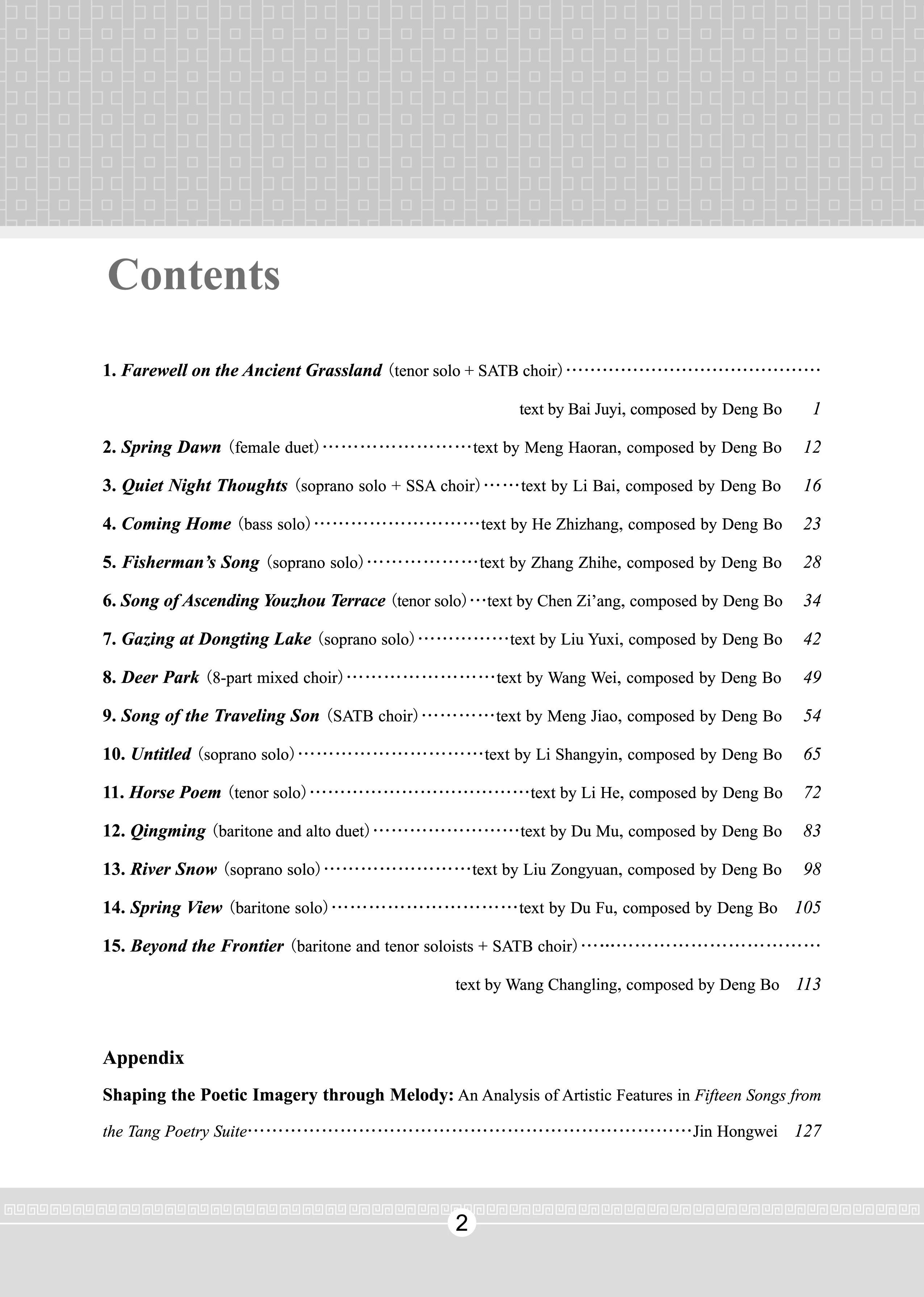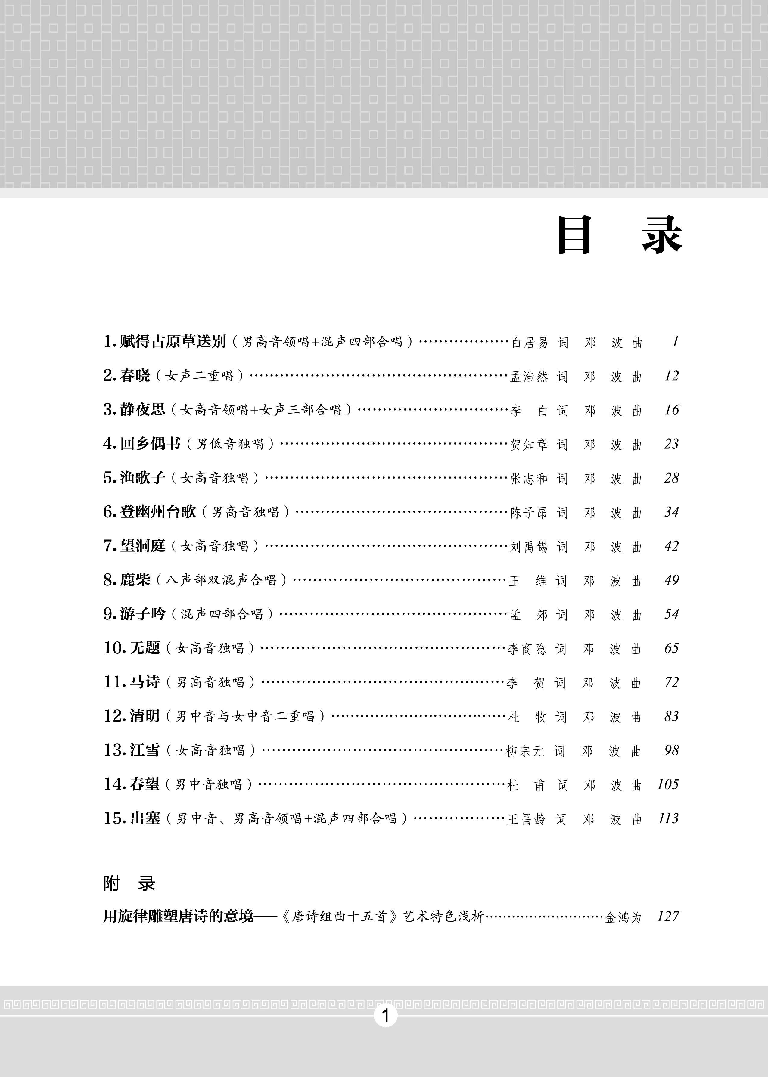 唐诗组曲 十五首,邓波