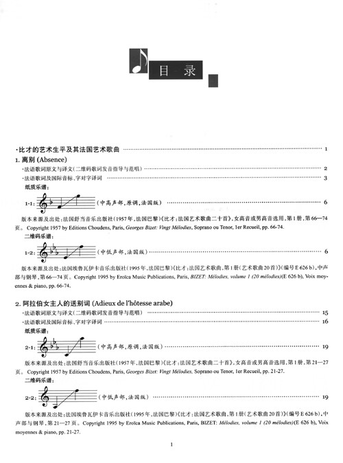 (5)由于法语在国内是“小语种”,且法语语音在演唱中又与口语不尽相同,为此旅法男中音歌唱家、上海音乐学院声乐歌剧系施恒副教授专门录制了“歌词发音指导”,内容包括歌词示范朗读和语音难点解析,以二维码形式呈现,大家扫码即可获得。