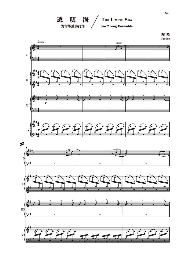 透明海 为古筝重奏而作, 陶陌