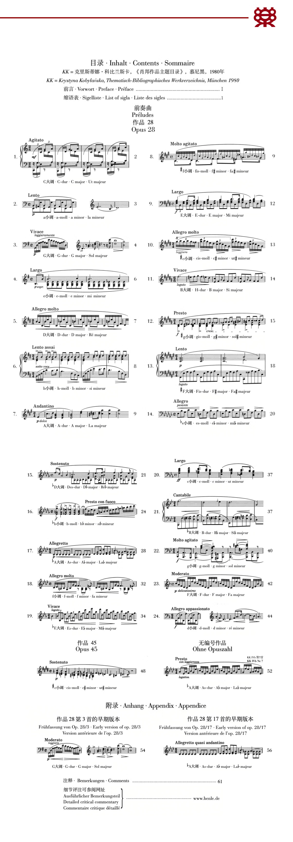 德国亨乐音乐出版社的出版物包括重要的古典钢琴曲目、室内乐及各种体裁的乐器作品。其乐谱有两大特色:一、推崇“原作版”,在版本编辑上倾注了大量严谨的编辑加工,力求澄清原作在几百年流传过程中的讹传。二、在乐谱制作方面,从版面设计到纸张选择,均以最舒适的视觉和手感为宗旨。 此次引自的肖邦系列出版物共9本,分别为《即兴曲》《玛祖卡舞曲》《圆舞曲》《前奏曲》《e小调第一钢琴协奏曲》《f小调第二钢琴协奏曲》《b小调钢琴奏鸣曲》《降b小调钢琴奏鸣曲》《c小调钢琴奏鸣曲》。