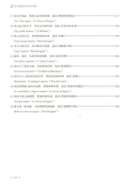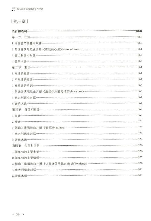 全书分为两部分:第一部分系统介绍了意大利语的发音规则,并结合声乐作品片段提供演唱提示,同时涵盖常用音乐术语和日常对话,帮助学生全面掌握意大利语的基本表达方式;第二部分精选了意大利声乐作品,供学生进一步学习如何通过语言表达塑造人物形象。作者在编写过程中得到了北京外国语大学意大利语专家的指导,力求内容科学、实用。《意大利语语音及声乐作品选(第3版)》为我国声乐教育事业的发展提供了重要参考。